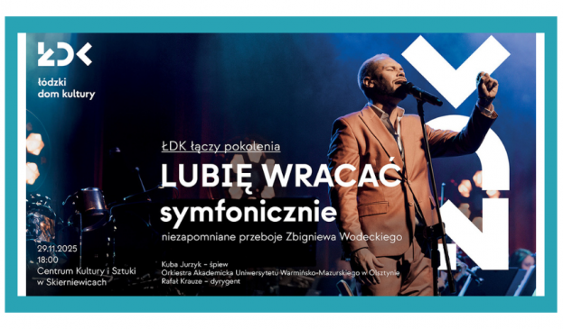 Podczas koncertu, którego organizatorem jest Łódzki Dom Kultury, usłyszeć będzie można ponadczasowe utwory z repertuaru Zbigniewa Wodeckiego w symfonicznych aranżacjach Tomka Szymusia – pełnych emocji, brzmieniowej głębi i magii dźwięku. W rolę legendy wcieli się Kuba Jurzyk – charyzmatyczny wokalista znany ze Studia Accantus! Towarzyszyć mu będzie Orkiestra Akademicka Uniwersytetu Warmińsko-Mazurskiego w Olsztynie.