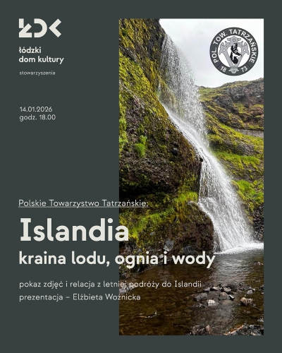 14 I – Islandia – kraina lodu, ognia i wody”. Pokaz zdjęć i relacja z letniej podróży do Islandii - prezentacja: Elżbiety Woźnickiej.