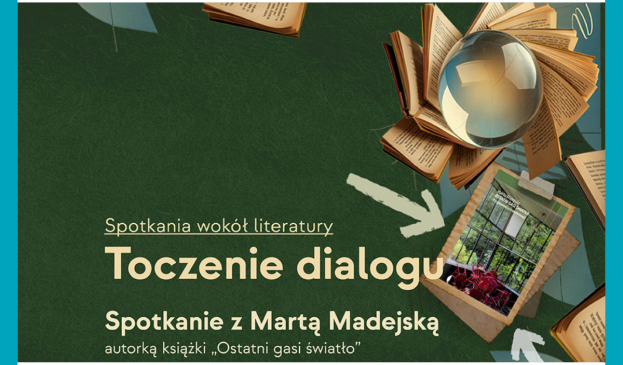 Gościem kolejnego spotkania z cyklu „Toczenie dialogu” będzie Marta Madejska – archiwistka, pisarka, redaktorka i kuratorka wystaw, autorka głośnej „Alei Włókniarek” oraz wydanej w 2025 roku książki „Ostatni gasi światło. Przypowieści o transformacji”. Z autorką porozmawia Piotr Grobliński – poeta, prozaik i redaktor.